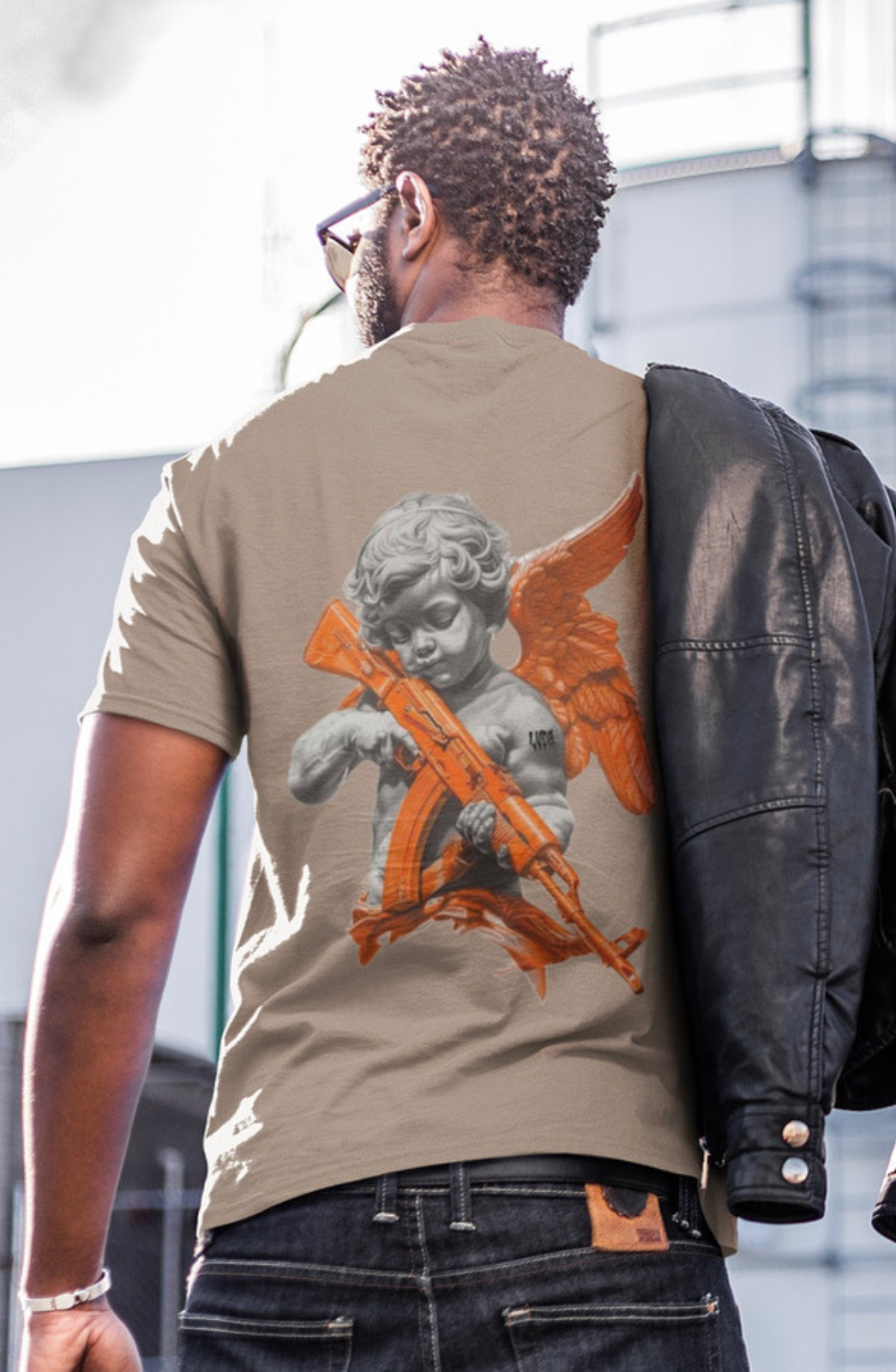 T-shirt emblématique signé LVDA Paris avec une illustration percutante d’un ange armé. Fusion d’art baroque et de streetwear rebelle, ce visuel audacieux affiche le logo LVDA et affirme une identité forte et engagée. Pièce phare pour un look qui sort du cadre.