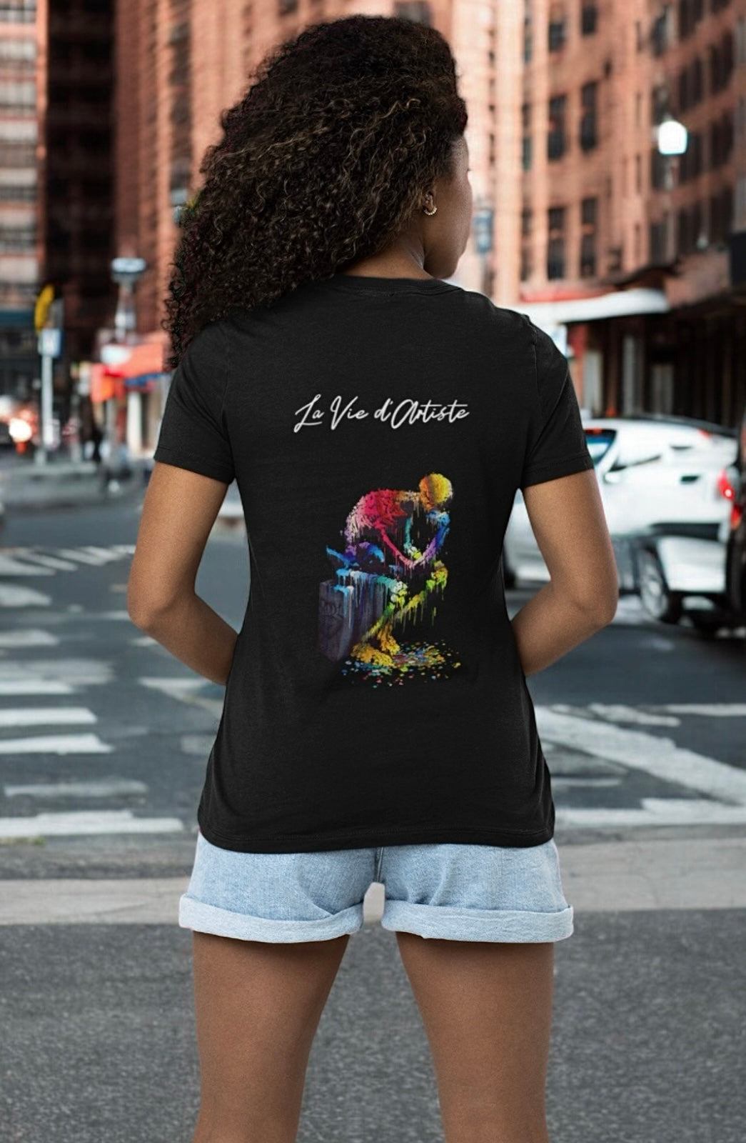 T-shirt La Vie d’Artiste au design vibrant inspiré du Penseur revisité en street art. Une explosion de couleurs pour exprimer la créativité, la réflexion et la liberté d’esprit. Idéal pour ceux qui vivent et pensent en artiste. .